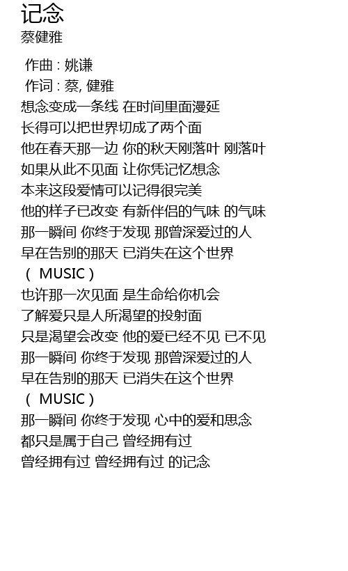| [03:20.700] | 曾经拥有过 曾经拥有过 的记念 |