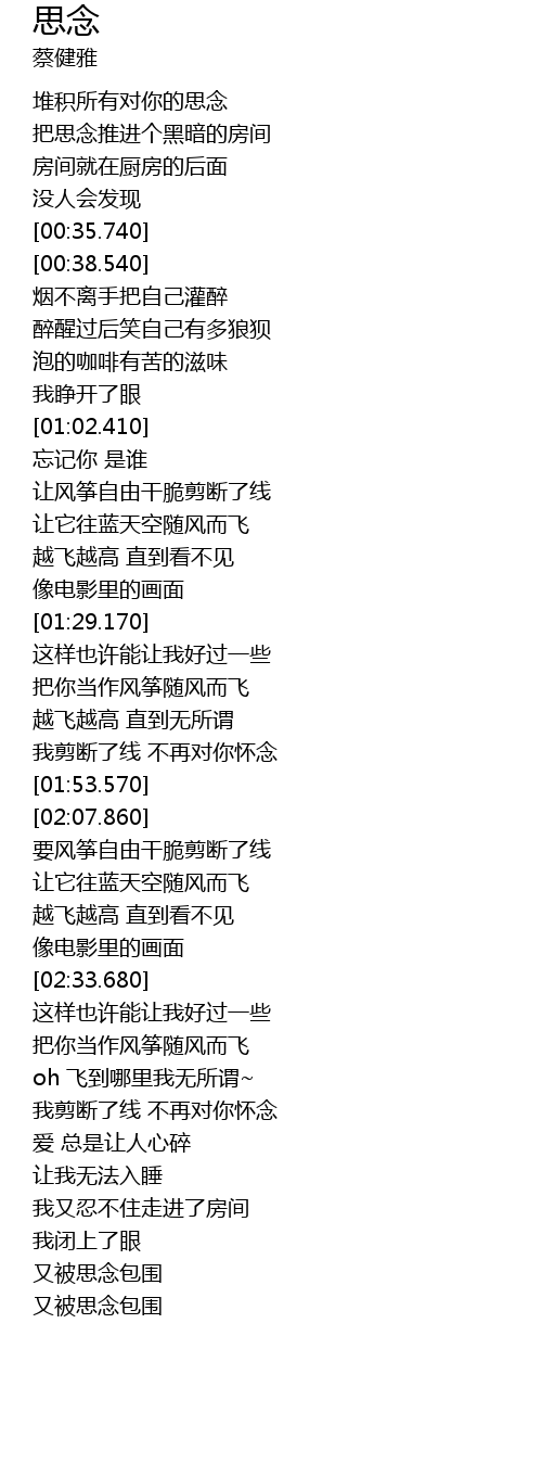 | [02:13.800] | 要风筝自由干脆剪断了线 |