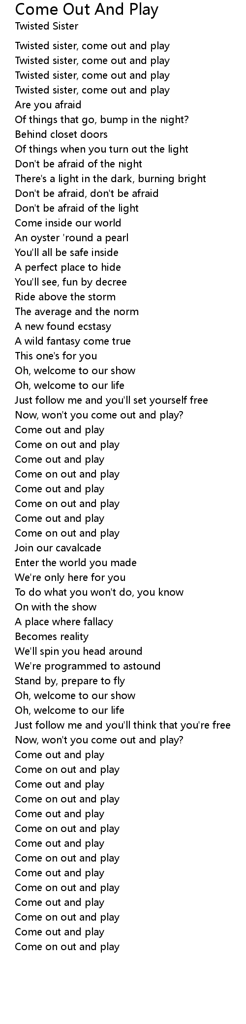 Come out and play |