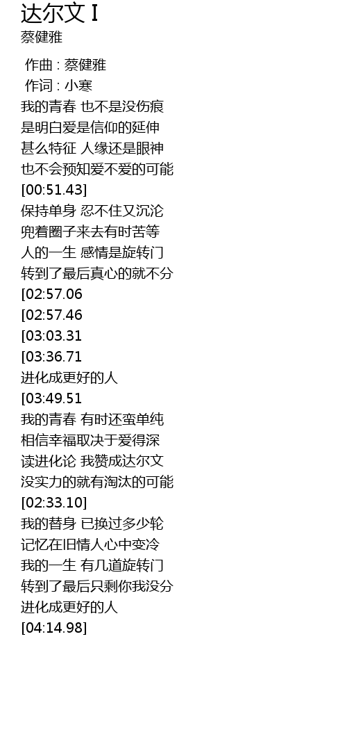 | [02:21.30] | 读进化论 我赞成达尔文 |