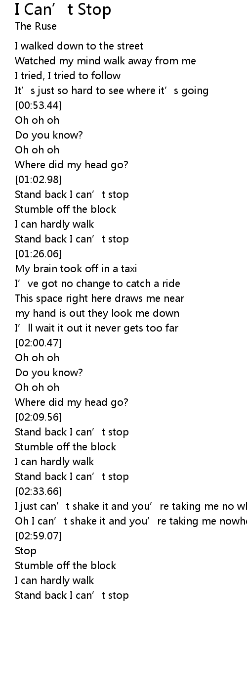 | [02:13.41] | Stand back I can' t stop |