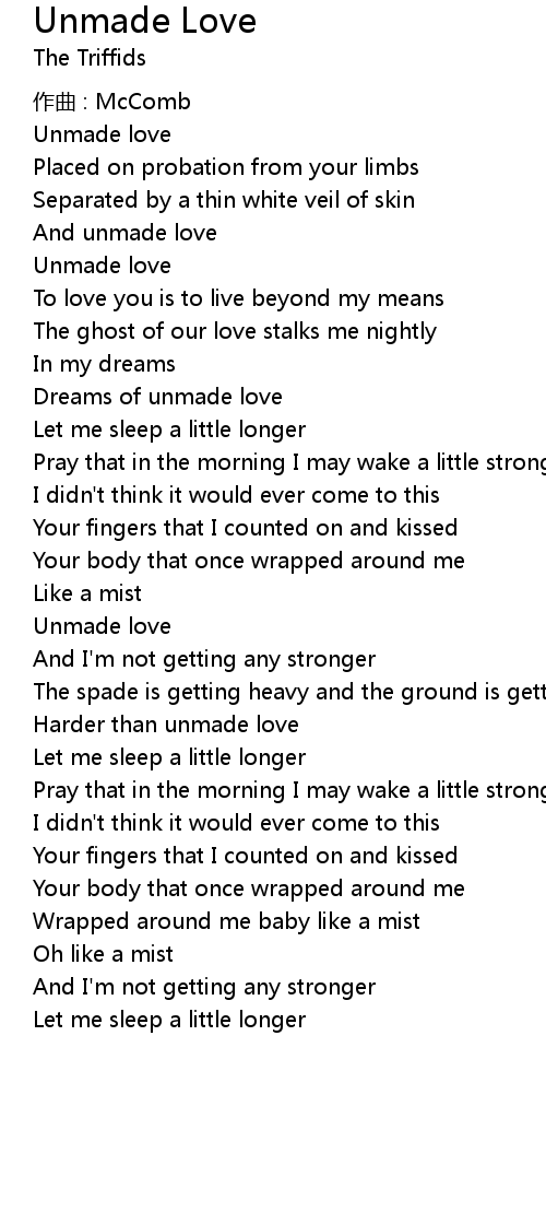 | And unmade love | |