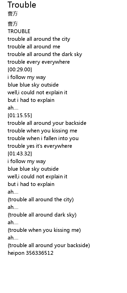 | [01:31.16] | trouble when you kissing me |