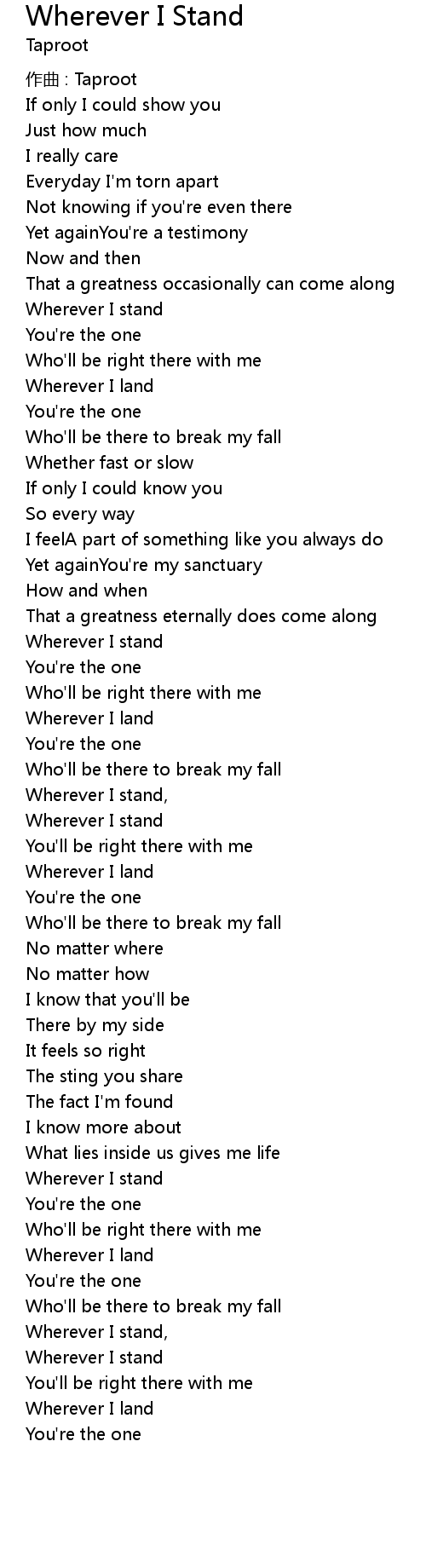 | Song | Wherever I Stand |
