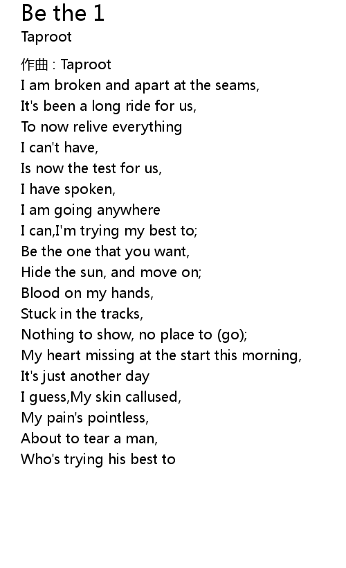 | Song | Be the 1 |