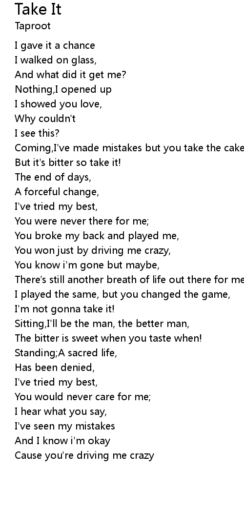 Coming,I've made mistakes but you take the cake, |