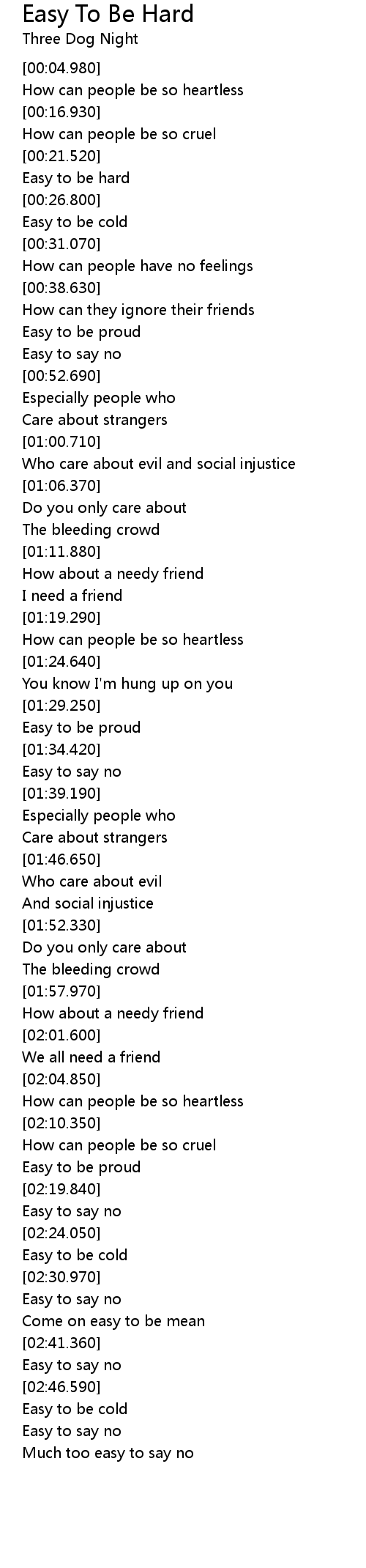 Easy to be hard |