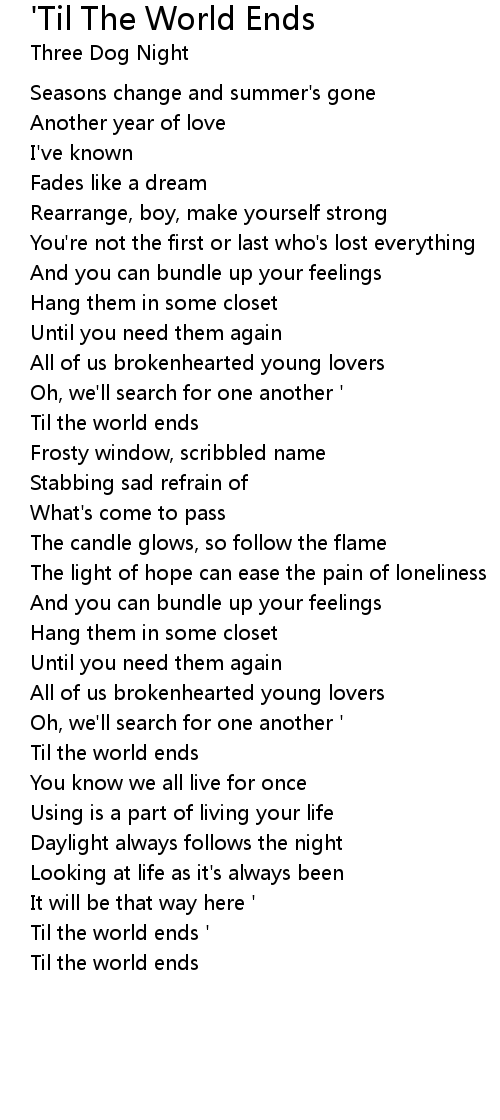 Til the world ends ' |
