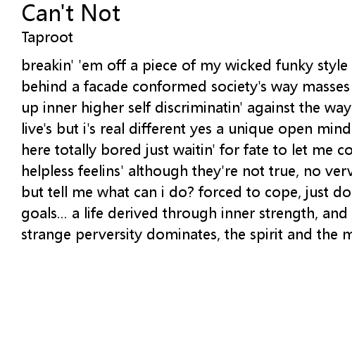 breakin' 'em off a piece of my wicked funky style up front str8 up, no hiding behind a facade conformed society's way masses try to fit in, sin after sinner up inner higher self discriminatin' against the ways others are livin' their live's but i's real different yes a unique open mind just fuckin' sittin' around here totally bored just waitin' for fate to let me conquer my goals, these helpless feelins' although they're not true, no verve is left inside of my soul, but tell me what can i do? forced to cope, just don't know, how to acheive, my goals... a life derived through inner strength, and the traits in the divine, strange perversity dominates, the spirit and the mind... |