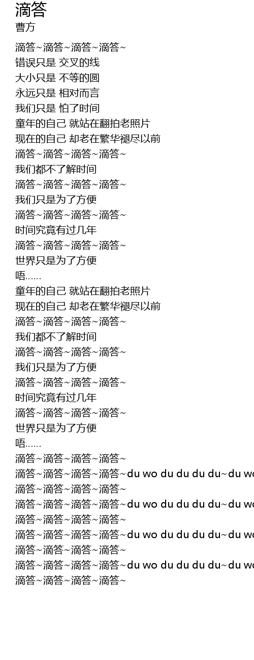 | [03:31.770] | 滴答~滴答~滴答~滴答~du wo du du du du~du wo du du du du~ |