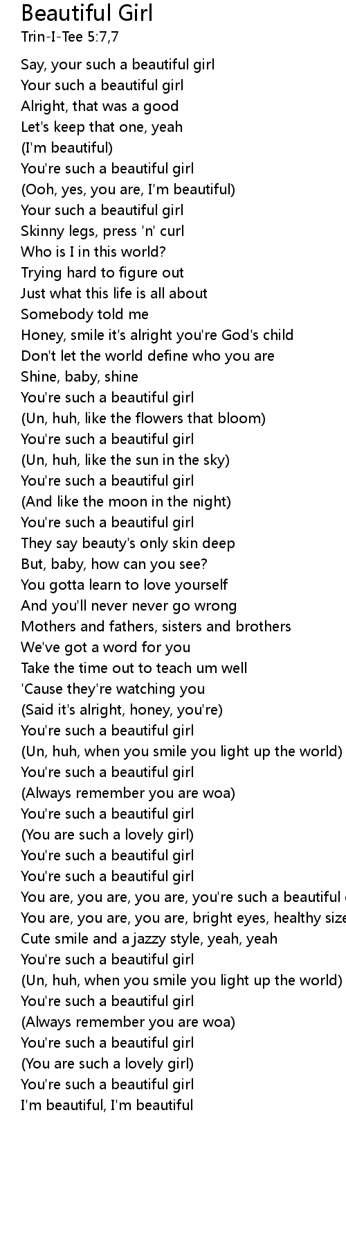 | You are, you are, you are, you're such a beautiful girl | |