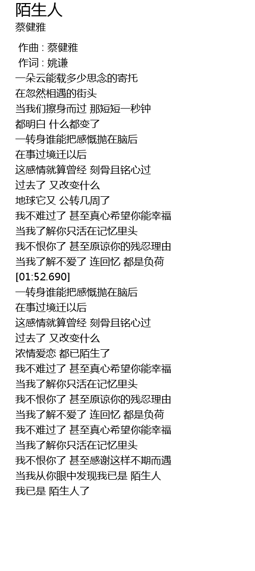 | [03:35.470] | 我已是 陌生人了 |