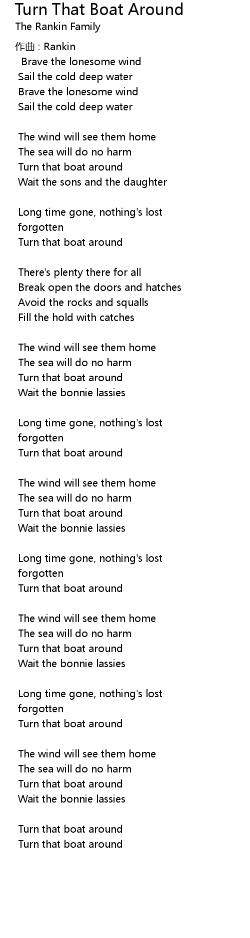 | Song | Turn That Boat Around |
