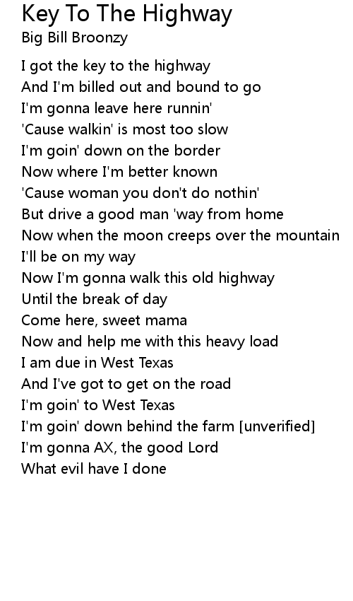 I got the key to the highway |
