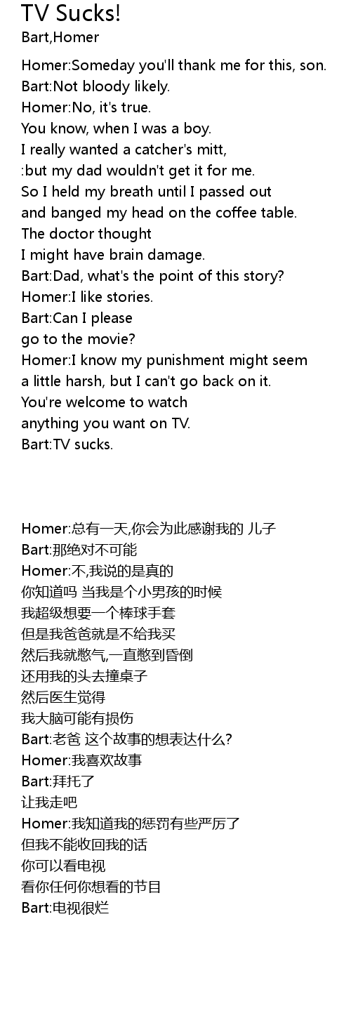 | [00:30.78] | Bart:TV sucks. |