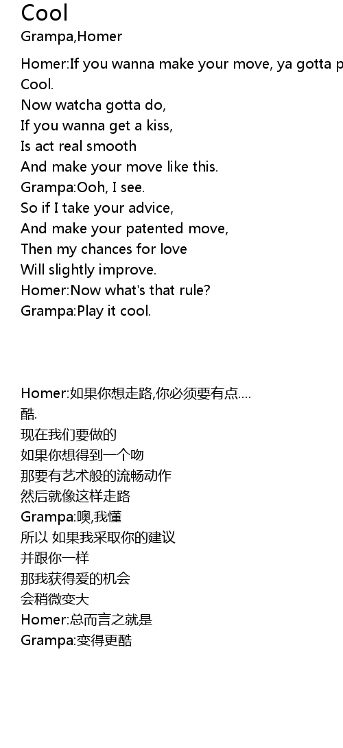 | [00:00.63] | Homer:If you wanna make your move, ya gotta play it... |