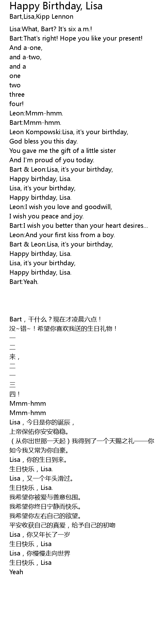 Bart & Leon:Lisa, it's your birthday, |