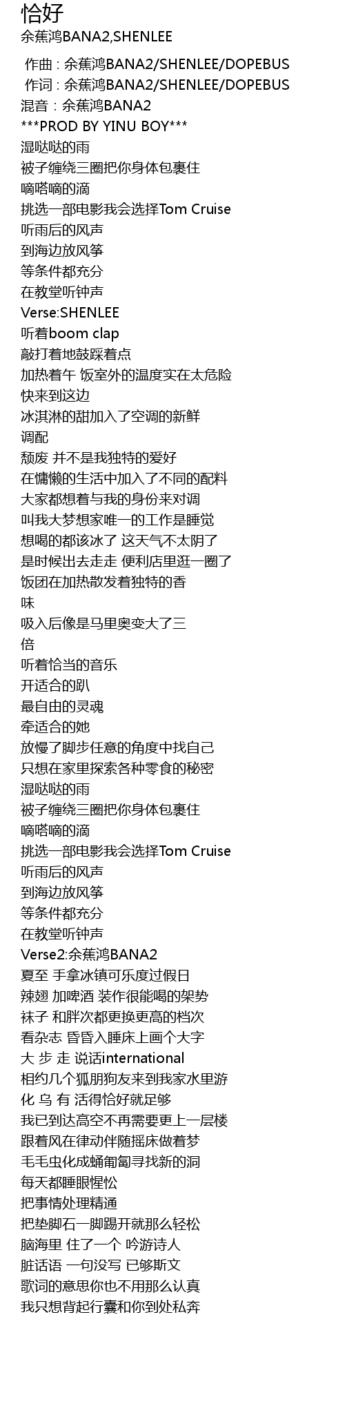 | [00:01.000] | zuo ci : yu jiao hong BANA2 SHENLEE DOPEBUS |