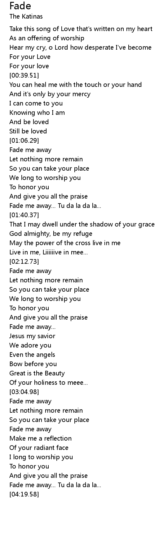 Fade me away... Tu da la da la... |