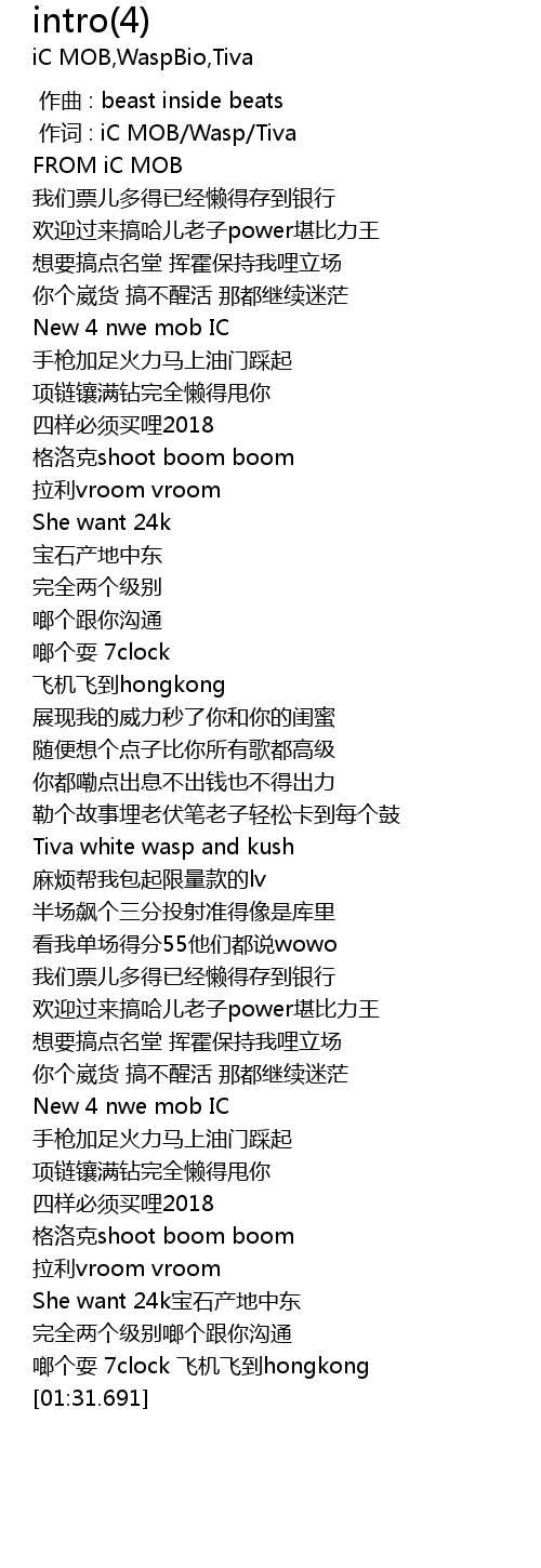 | [00:01.000] | 作词 : iC MOB/Wasp/Tiva |