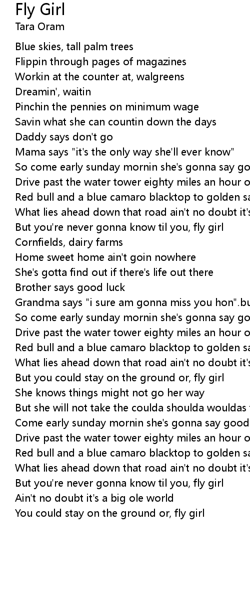 But you're never gonna know til you, fly girl |