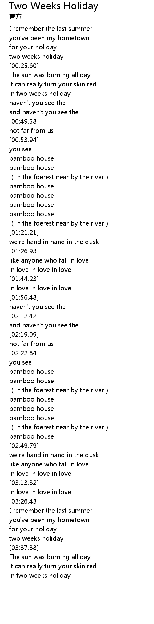 | [00:22.62] | two weeks holiday |