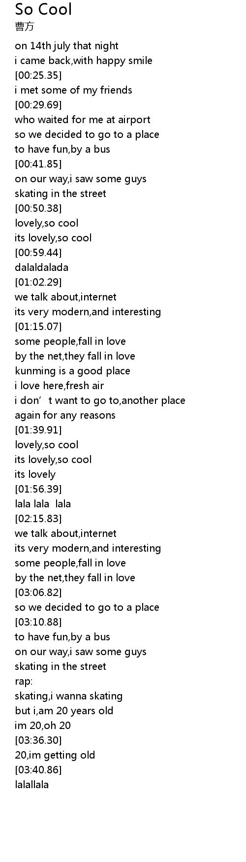 | [01:40.99] | lovely, so cool |