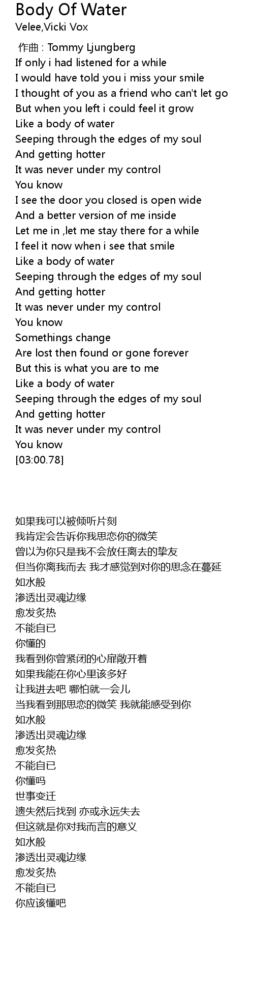| [00:36.07] | Like a body of water |