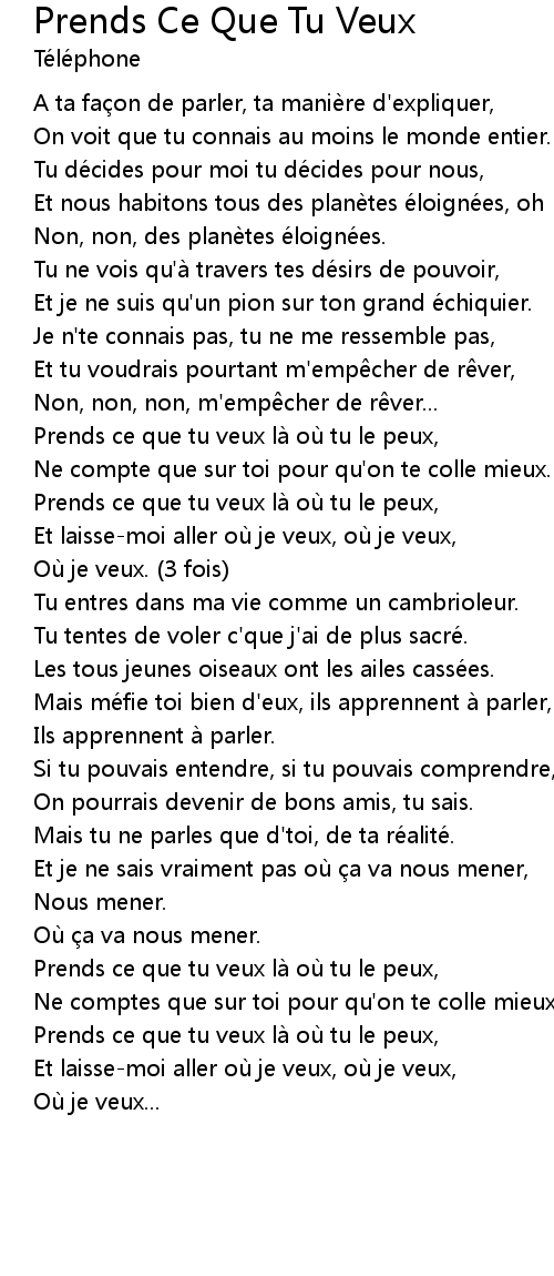 | Et laissemoi aller ou je veux, ou je veux, | |
