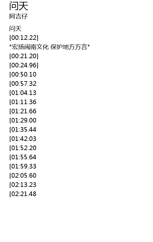| [00:13.28] | *宏扬闽南文化 保护地方方言* |