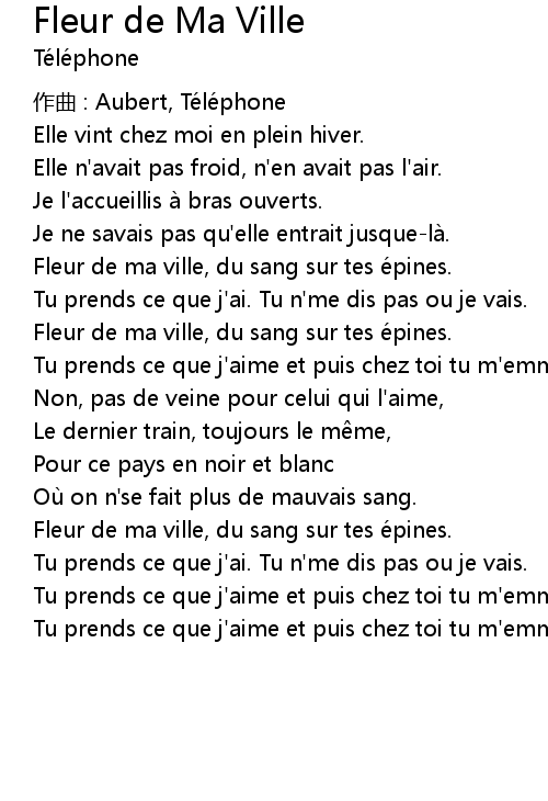 | Fleur de ma ville, du sang sur tes épines. | |