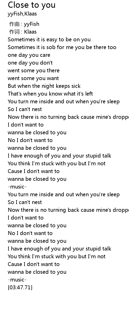 | [00:45.92] | You turn me inside and out when you' re sleep |