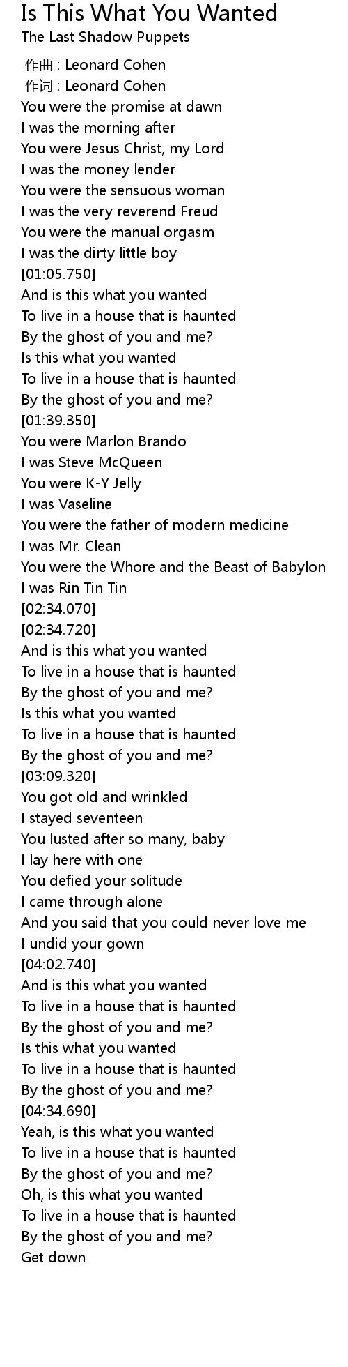 | [00:01.000] | zuò cí : Leonard Cohen |