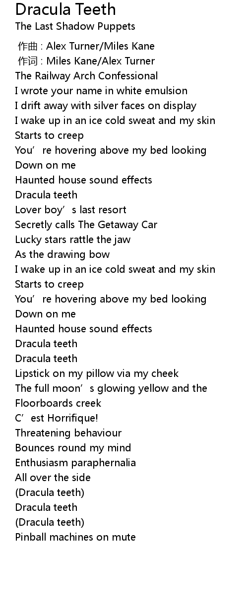 | [00:01.000] | 作词 : Miles Kane/Alex Turner |