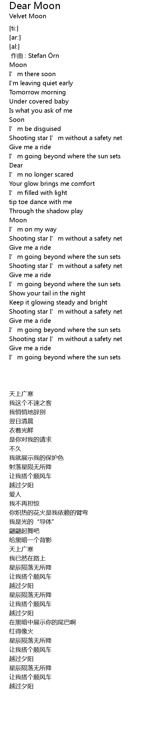 | [02:44.00] | Shooting star I' m without a safety net |