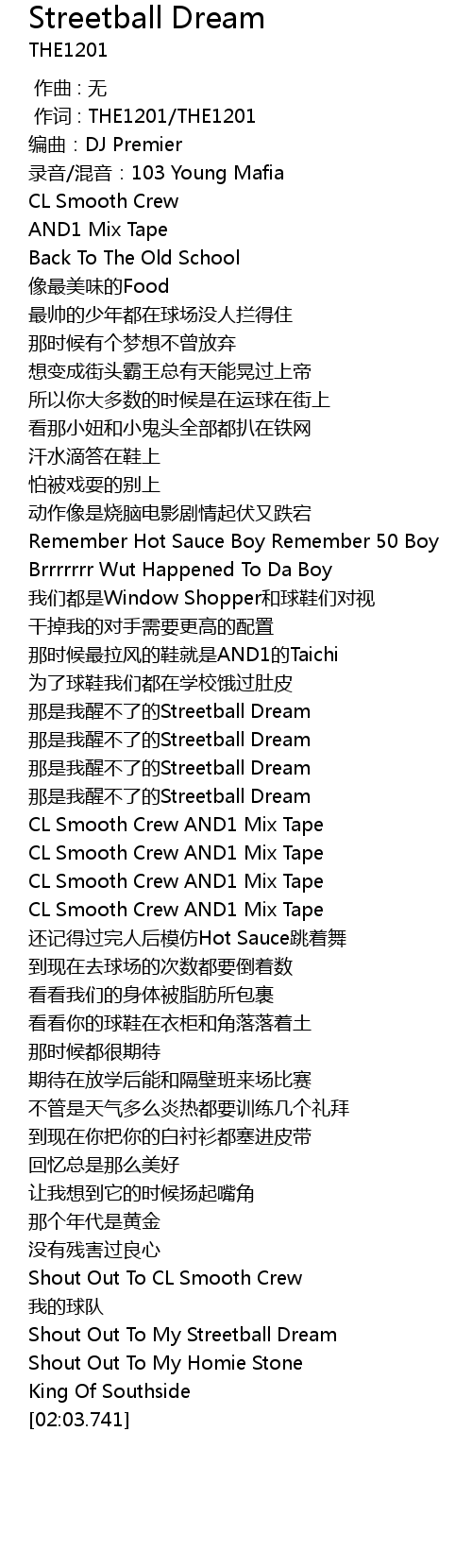 | [01:54.961] | Shout Out To My Streetball Dream |