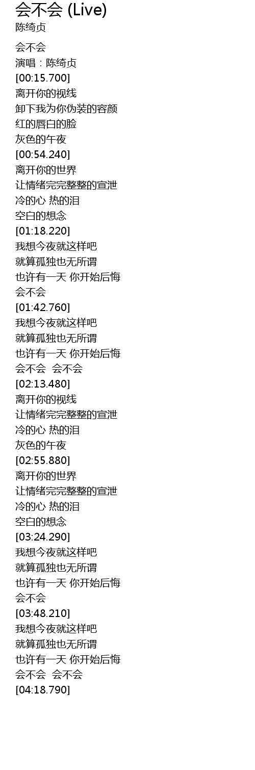 | [02:02.950] | 会不会 会不会 |