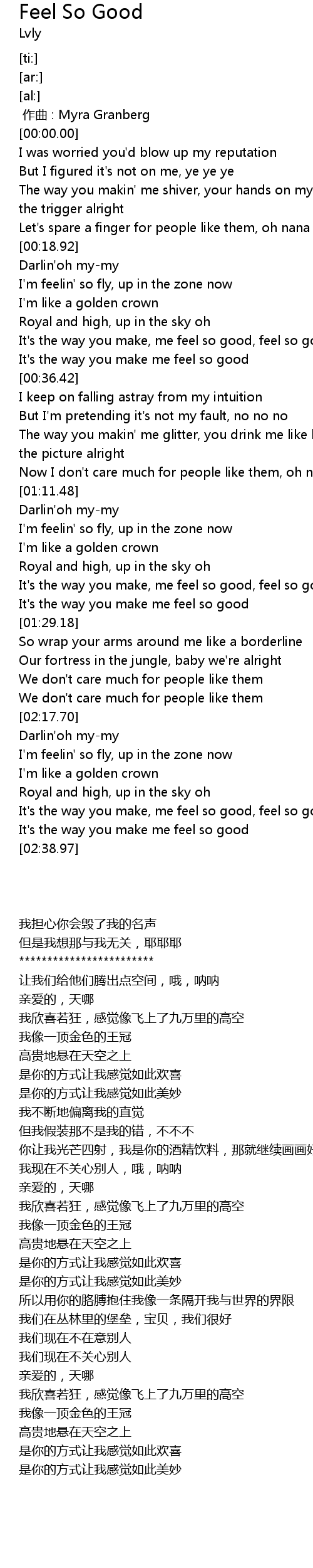 | [02:30.56] | It's the way you make, me feel so good, feel so good right now |