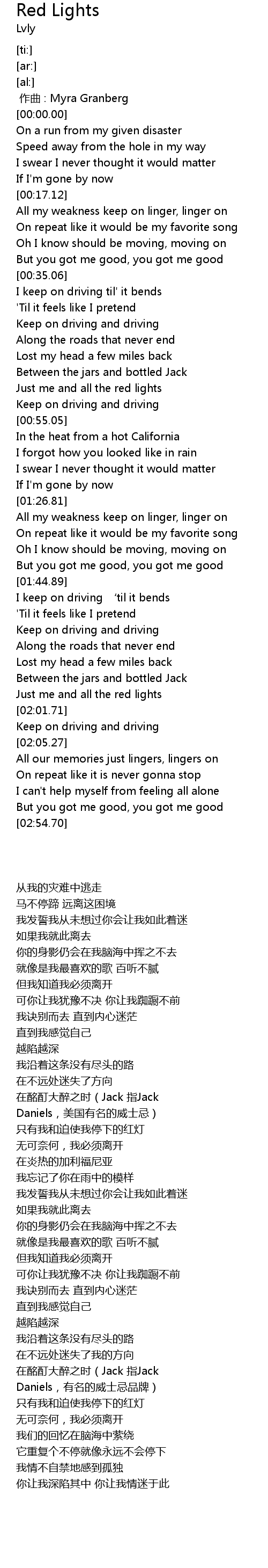 | [01:58.50] | Just me and all the red lights |