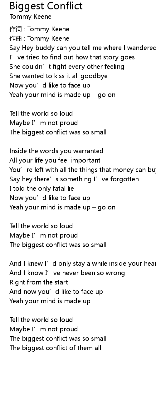 | Song | Biggest Conflict |