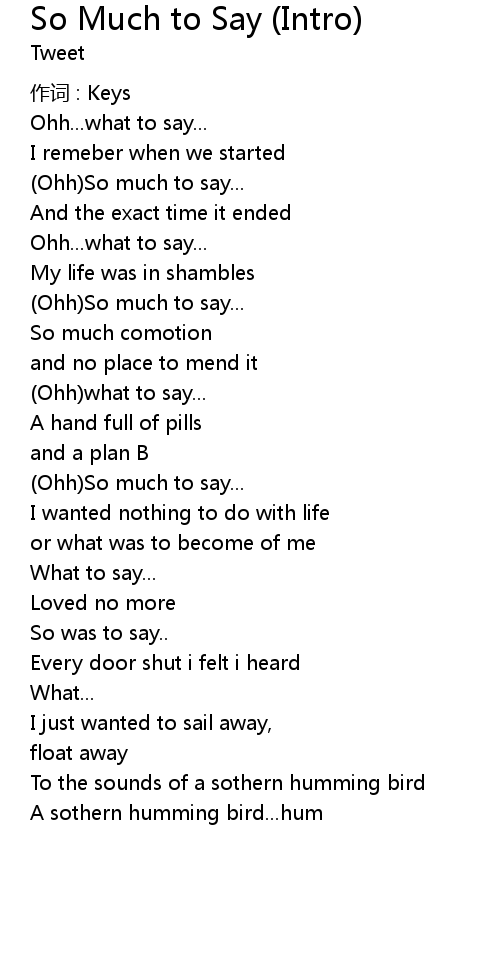 | Song | So Much to Say (Intro) |