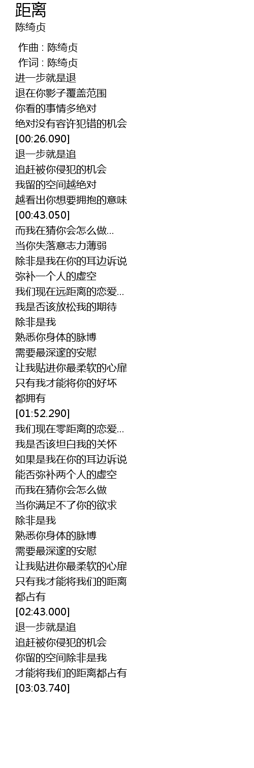 | [02:33.830] | 只有我才能将我们的距离 |