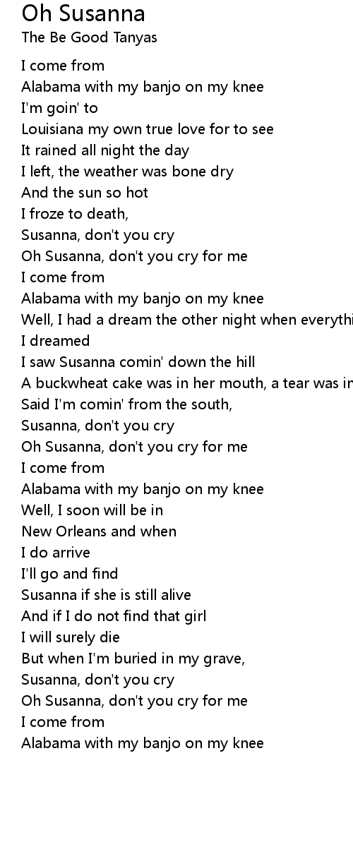 Oh Susanna, don't you cry for me |