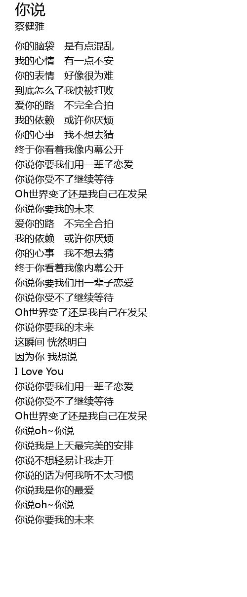 | [00:54.530] | nǐ shuō nǐ yào wǒ de wèi lái |