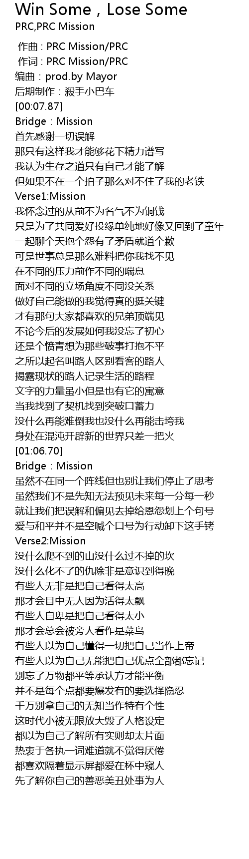 | [00:01.000] | 作词 : PRC Mission/PRC |