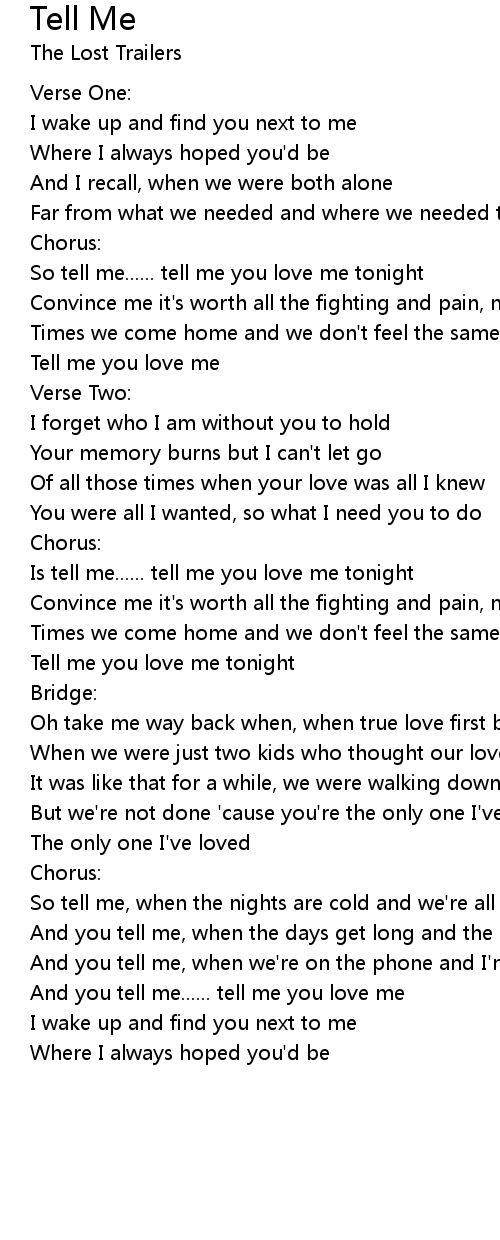 So tell me...... tell me you love me tonight |