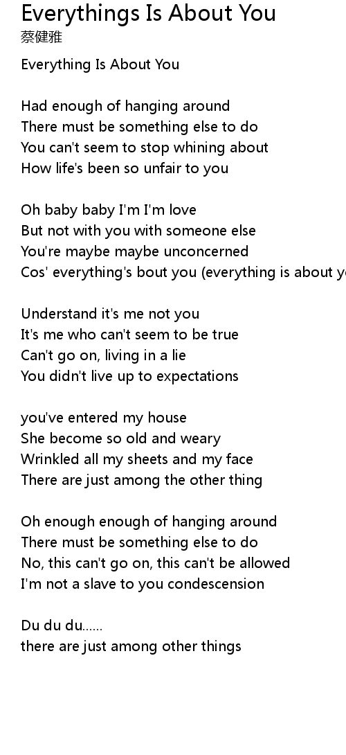 Everythings Is About You Lyrics