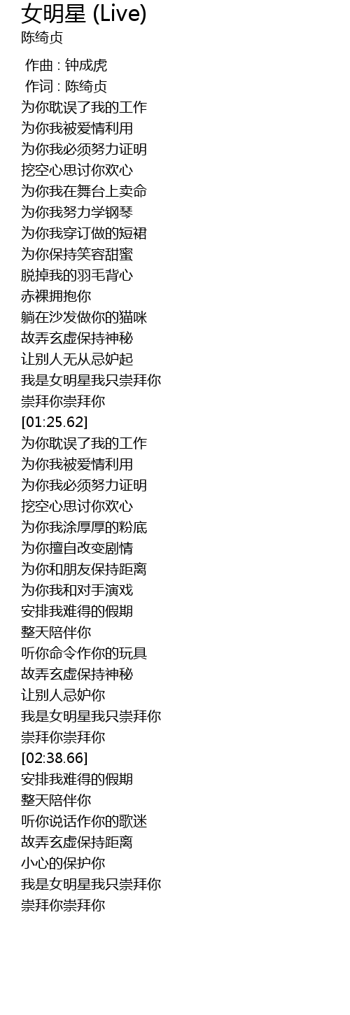 | [02:20.23] | 我是女明星我只崇拜你 |