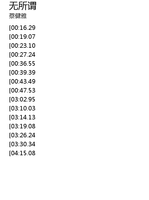 | [04:23.62][04:15.08][03:33.87][01:27.59] | 无所谓 无所谓 |