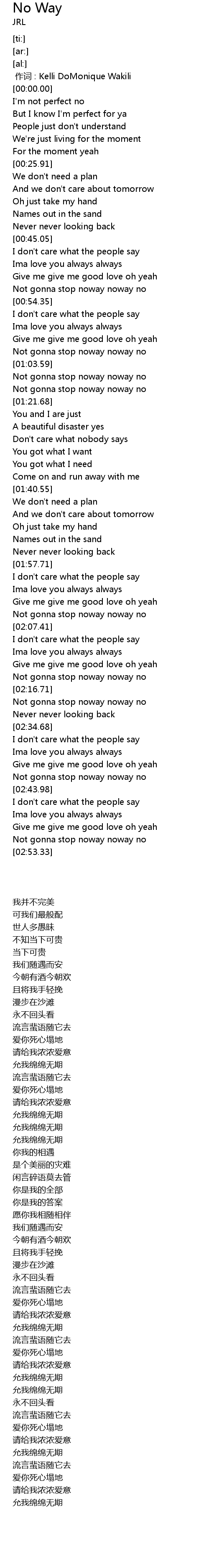 | [00:51.91] | Not gonna stop noway noway no |